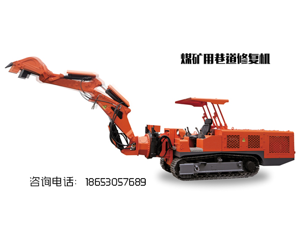 WPZ-37/600煤矿用巷道修复机在挖掘、侧掏、翻转、破岩、装车、起吊等各项动作,实现挖掘毛水沟、卧底、破岩、清理皮带机底部、平整巷道及小型配件吊装等多种功能。设备可配备破碎锤、锚杆机及锚杆切断器,可以实现破岩、钻锚杆孔、锚杆(索)切断及装配特有的架粱装置,可以辅助装卸U型梁。一机即可完成巷道修护全作业。